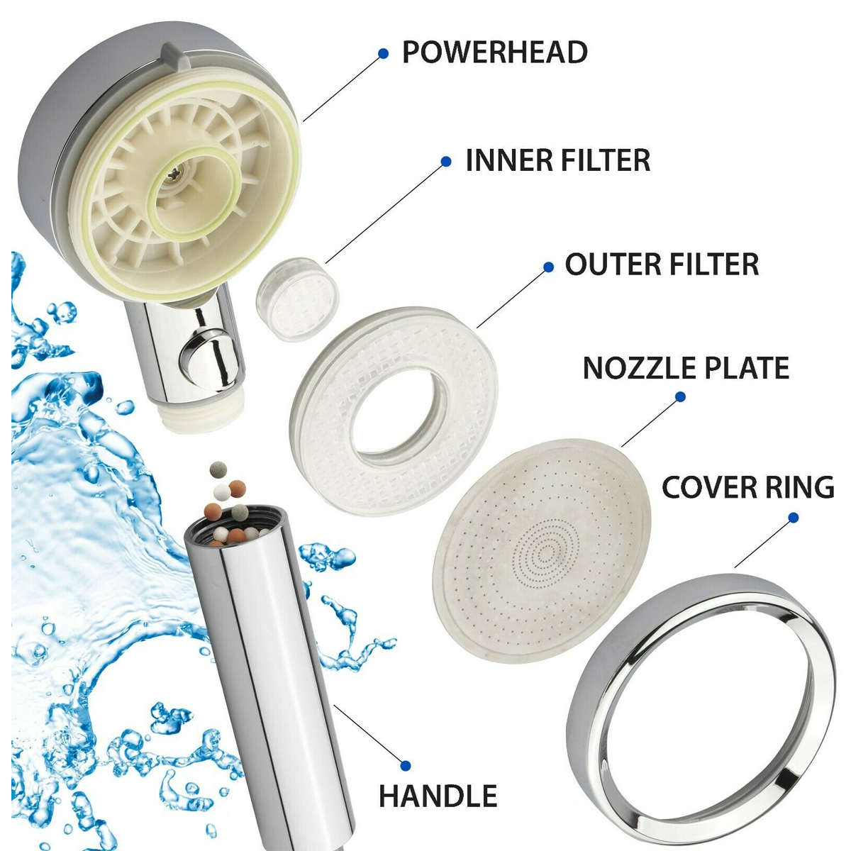 Removing the residual chlorine, heavy metals in the water. Softening and purifying shower water to make your skin and hair smoother and softer.