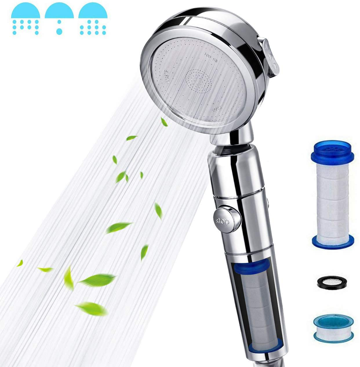 Simpure DB2 3Mode High Pressure Shower Head Filtered Water Saving ON/OFF Energy Stone Ball