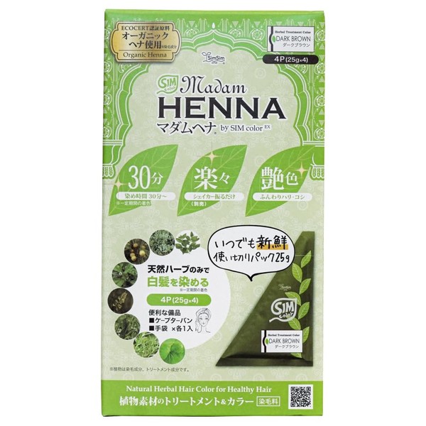 SimSim Madame Henna 4 Pack Set, Dark Brown