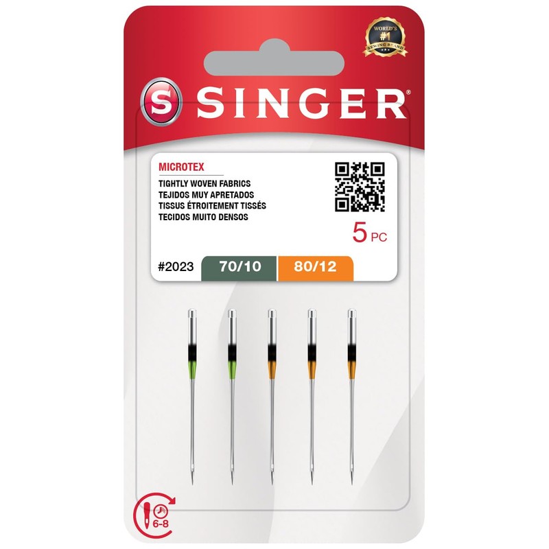 Package includes 5 x Genuine SINGER Microtex needles with a narrow point and finely honed tip for superior sharpness. These needles produce flawless, clean stitches with exactness. The selection of two sizes will cover your needs. Size 80/12 is used for light, woven material, like silk and the size 70/10 is for use on sheer fabrics and fine materials. These Singer Microtex Needles can be used with SINGER, Kenmore, and Brother machine brands.