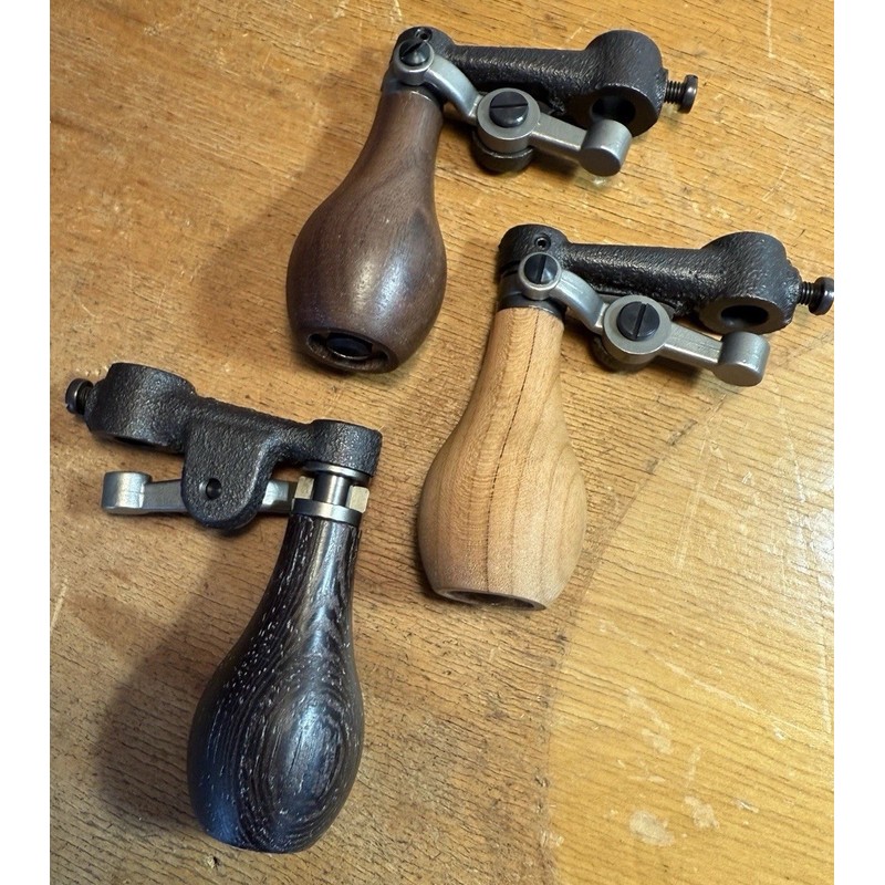 Wood handle options are Walnut, Cherry, and Wenge. Please let me know what type of wood you would like and specify what machine you will want to use this handle for. Cornely handle brackets have a slightly larger hole.