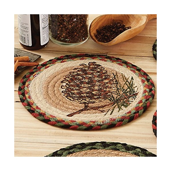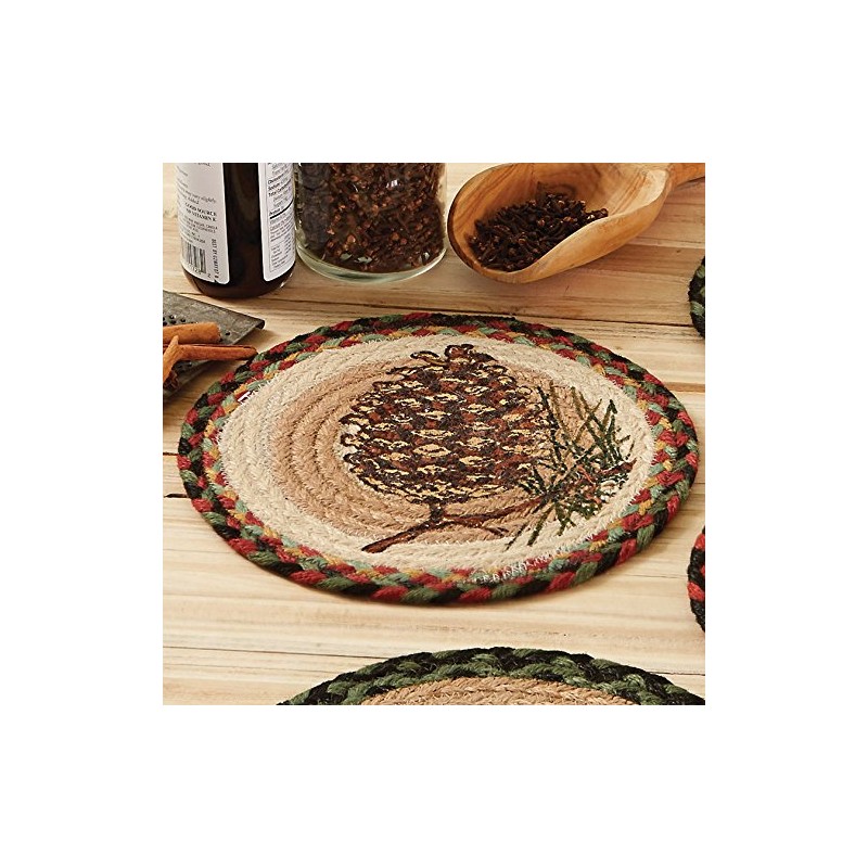 Single Pinecone Round Jute Trivet