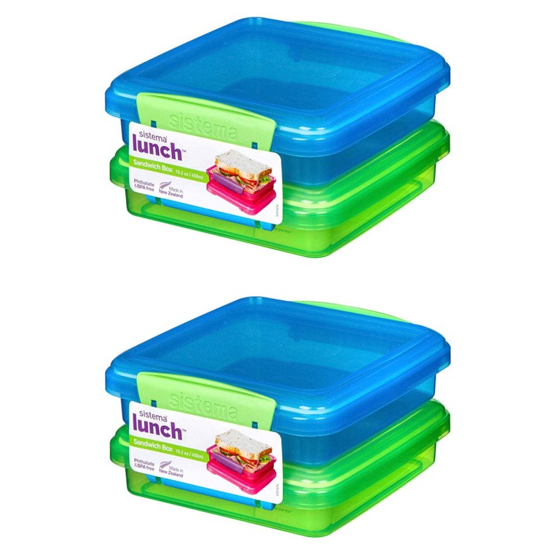 Sistema 450 ml Modern Lunch Box with Clips - 4 Pack (Blue, Green)