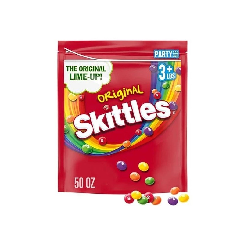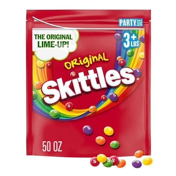 - Contains one (1) 50-ounce Party Size Bag of SKITTLES Original Chewy Candy Assortment
