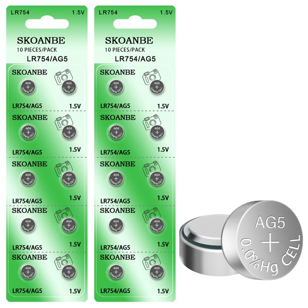 SKOANBE 20Packs AG5 LR754 LR48 1.5V Button Cell Watch Battery