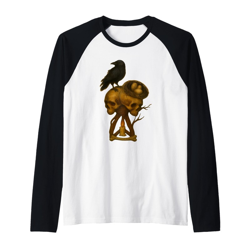 Skull Hex Crow | Gothic Horror Style Raglan Baseball Tee