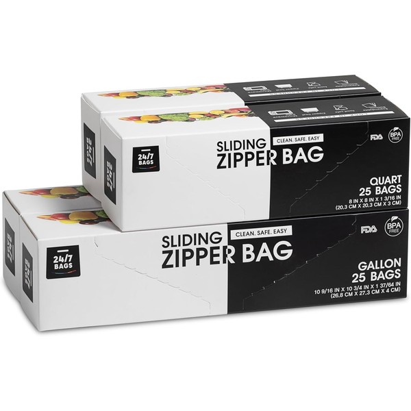 Slider Quart & Gallon Combo Pack, 100 Count, Expandable Bottom, Slider Seal, BPA-Free, Easy Write-On Rectangle (50 Bags Each)