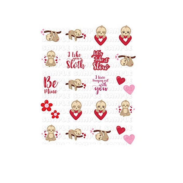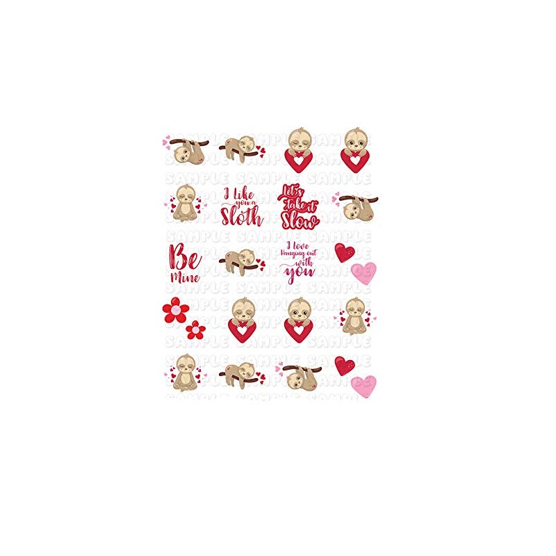 Sloth Valentine Heart Nail Art Decals