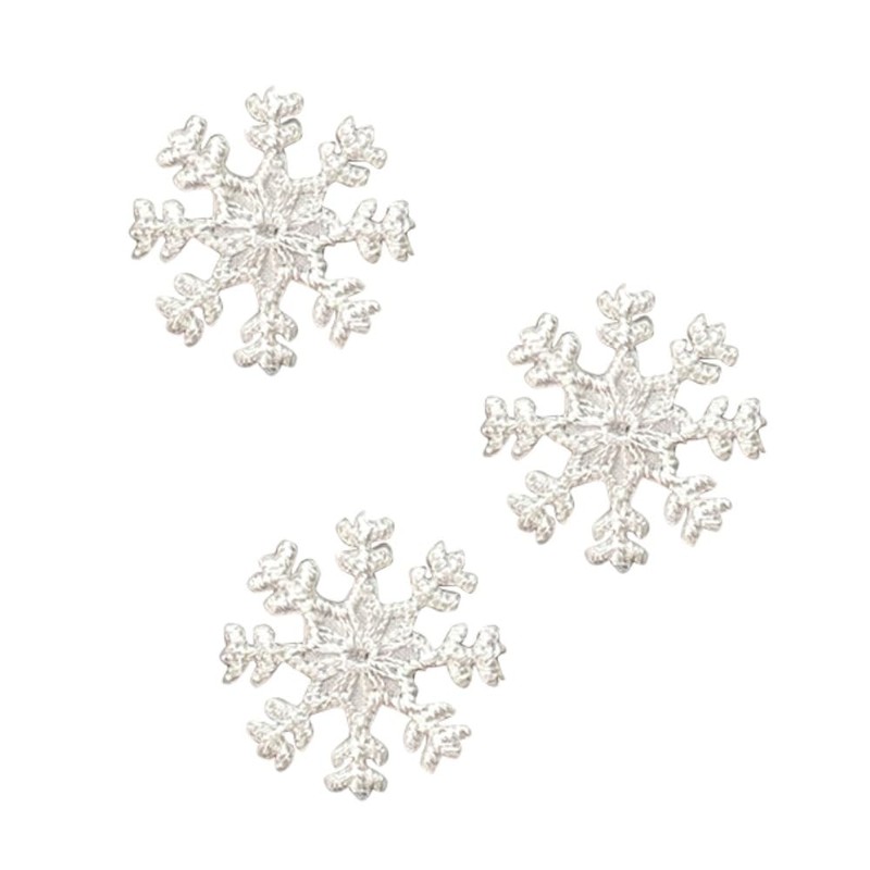 Small Snowflake Embroidered Iron on Patch (White - 3 Pieces)