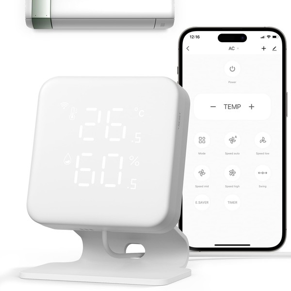 - [Intelligent Air Conditioning Control] Make old air conditioners/heat pumps smart: the app-controlled solution for window, split and mobile air conditioners as well as heat pump systems. With automatic energy optimisation, the intelligent control reduces power consumption by up to 30% compared to conventional thermostats.