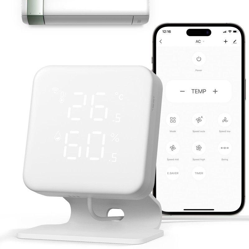 Smart Air Conditioning Control for Split, Window & Mobile ACS, with WLAN Thermometer Hygrometer, Automatic Comfort & Energy Saving, 60 Second Installation, Compatible with Google & Alexa
