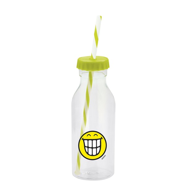 Smiley Emoticon Grinsen Flasche mit Strohhalm 55cl - grün