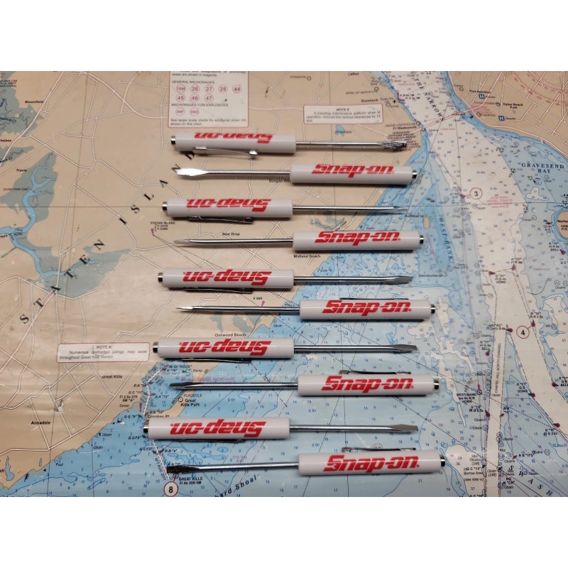 UP FOR SALE IS A 10 PACK BRAND NEW WHITE SNAP-ON POCKET SCREWDRIVE WITH POCKET CLIP AND MAGNETIC END, THESE ARE BRAND NEW.