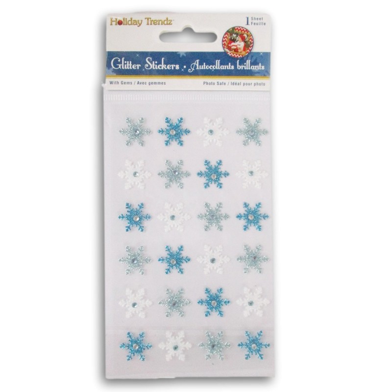 Snowflake Gem Stickers - Glitter & Rhinestone Christmas and Winter -24 Pieces