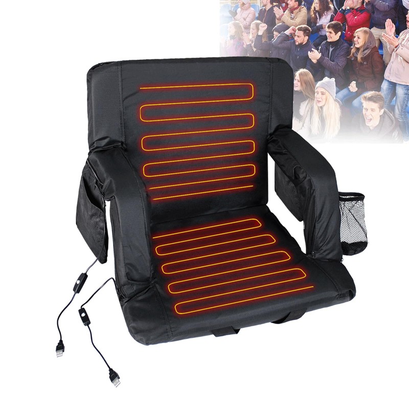 - Double Heated Stadium Seat:Stadium seat cushion with back support can be both heated on the back and the bottom, or you can choose which part you want to heat. It can be heated to 115 degrees Fahrenheit. Just contact the seat to the USB power banks (Not Included), and push the button, you will have a warm and comfortable seat during cold winter.