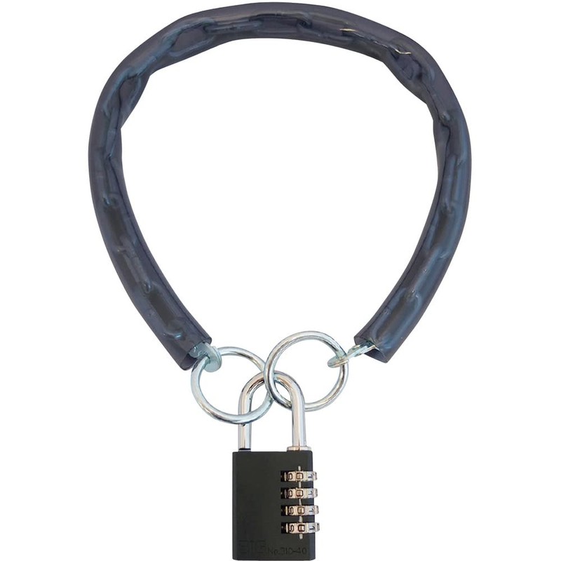 - This set includes a chain and padlock with a scratch resistant vinyl tube