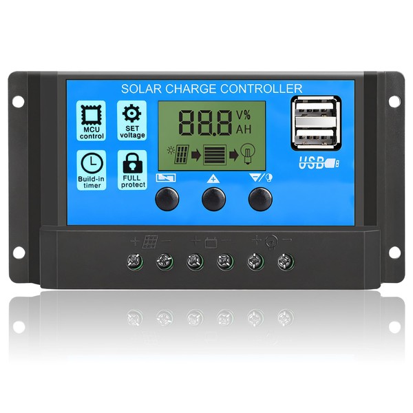 - Reliable Protection: The solar controller regulator provides over-current protection, short-circuit protection, reverse connection protection, low voltage protection and overcharge protection, providing reliable protection for your device. Built-in industrial microcontroller, can automatically manage and memorize various parameters set by the user, even if the battery is exhausted, the data will not be lost. Once the voltage is too low, the solar controller will automatically shut down