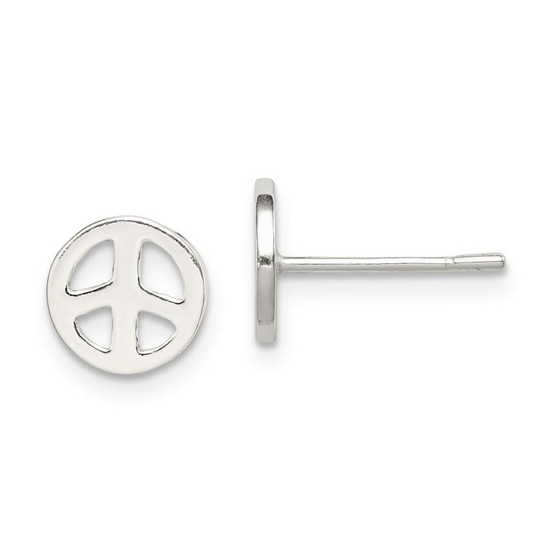 Solid 925 Sterling Silver Peace Sign Sign Post Studs Earrings (7mm x 7mm)