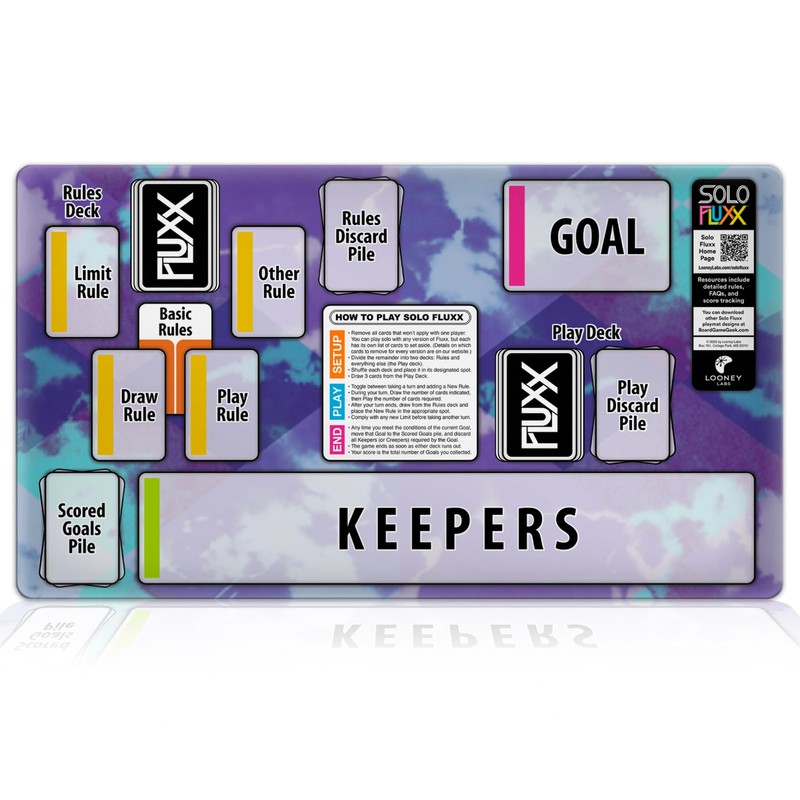 - The Solo Fluxx Playmat enhances the game experience by organizing card placements and streamlining gameplay