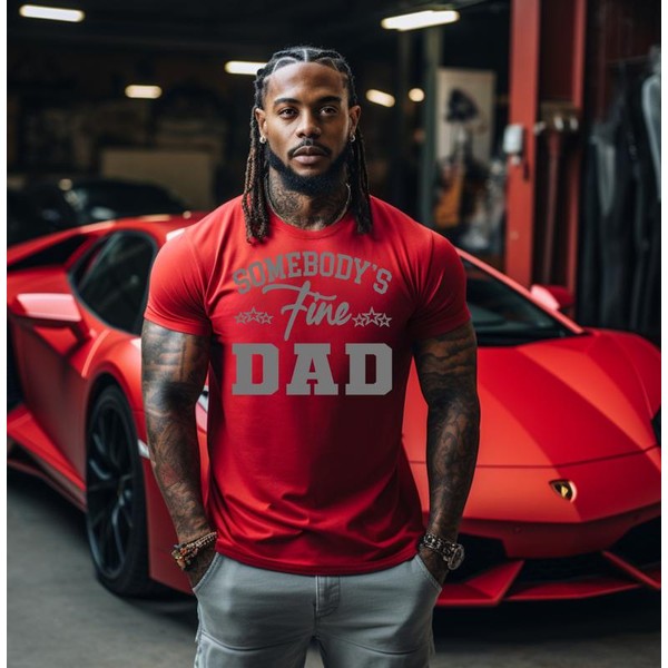 Celebrate the special dad in your life with this stylish screen print featuring the phrase "Somebody's Fine Dad." This shirt is a perfect way to express your pride and love, making it a great addition to any wardrobe. Whether you're out with friends or enjoying a quiet day at home, this shirt is sure to bring a smile to his face.
