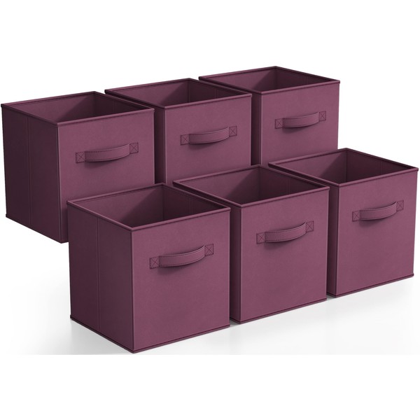 Sorbus Foldable Storage Cubes - 6 Fabric Baskets for Organizing Pantry, Closet, Shelf, Nursery, Playroom, Toy Box, Cubby - 11 Inch Dual Handle Collapsible Closet Organizers and Storage Bins (Purple)