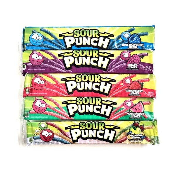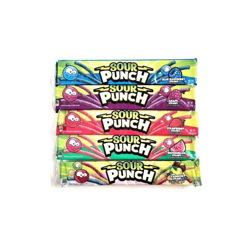 - Includes: 5 Assorted Sour Punch Sour Straws Packs and 2 Gosutoys Stickers