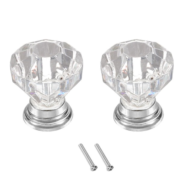 sourcing map 2 Pcs Crystal Knobs 25 mm Drawer Pulls Crystal Drawer Knobs for Cupboard, Wardrobe, Dresser, Clear/Silver