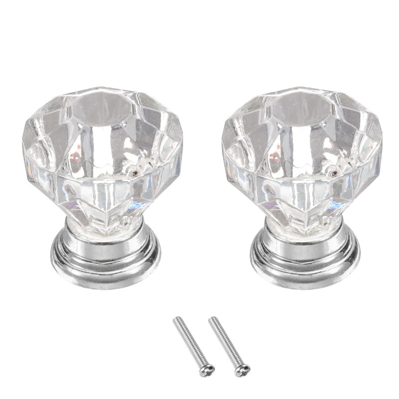 - Size and Quantity: The package includes 2 pcs crystal drawer knobs and 2 pcs screws, each knob measuring 25 mm in diameter and 30 mm in height, which are designed to fit various furniture.