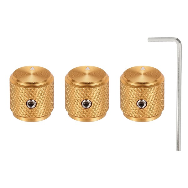 sourcing map 3 Pcs Aluminium Potentiometer Knobs, 1/4" (6mm) Universal Volume Tone Control Knobs with Arrow Indicator for Guitar, 1/2" Gold