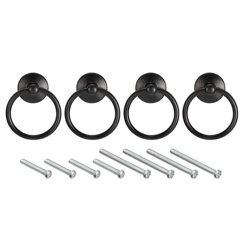 sourcing map 4Pcs Round Ring Pulls, Drawers Knobs Black Circle Drawer Handles Single Hole for Dresser Cupboard Wardrobe