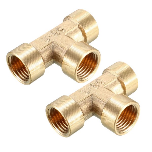 sourcing map Brass Tee Pipe Fitting 1/4 PT Female Thread T Shape Connector Coupler 2pcs