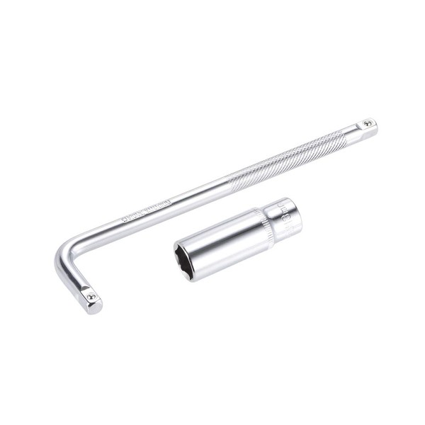 sourcing map Socket Accessory Set of 2 Pcs, 13mm 6-Point Deep Socket 6" L-Shape Extension Handle with 1/4" Drive