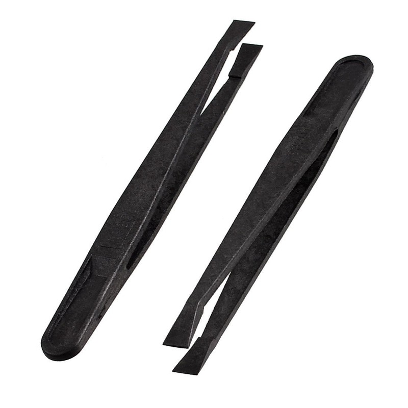 sourcingmap 2 Pcs 93301 Black Plastic Anti Static Flat Tip Tweezers Tool 4.5" Long