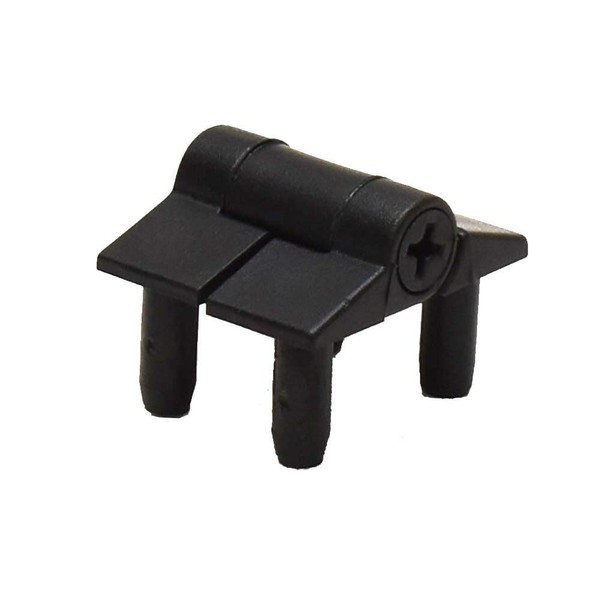 This hinge is constructed out of black Acetal Copolymer and measures approximately 1" L x 1 1/4" W x 1" H overall. Mounts with (4) 1/4" Dia. pegs.