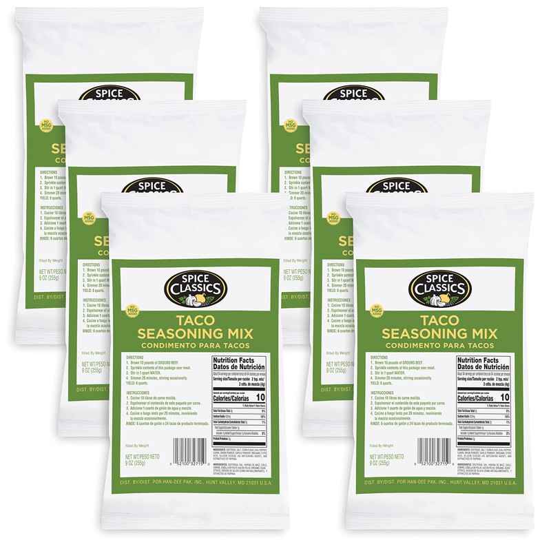 Spice Classics Taco Seasoning Mix, 9 oz (Pack of 6) - Six Individual Packets of 9 Ounce Taco Seasoning Mix for Mexican-Inspired Flavor, Ideal on Chicken, Pork, Veggies and More