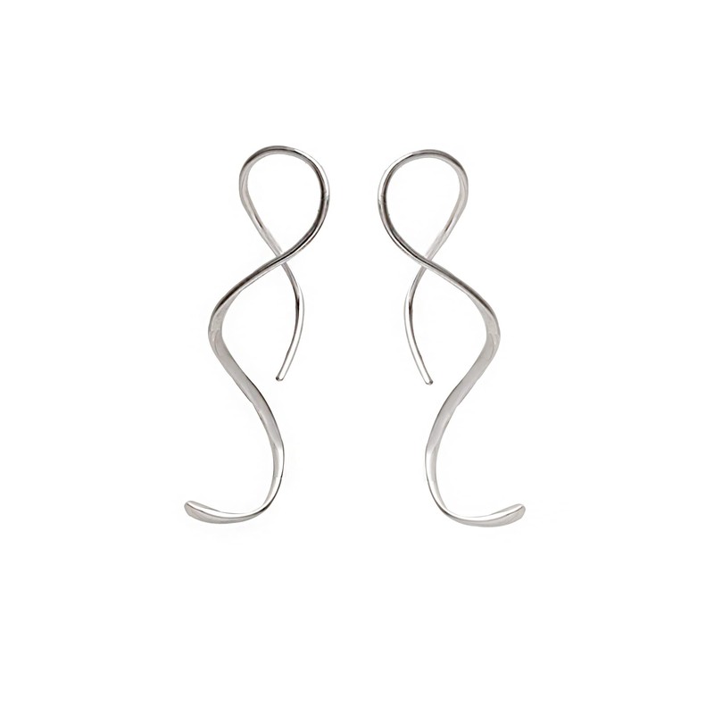 Spiral Threader Earrings 925 Sterling Silver Twisted Linear Curved Pull Through Earrings