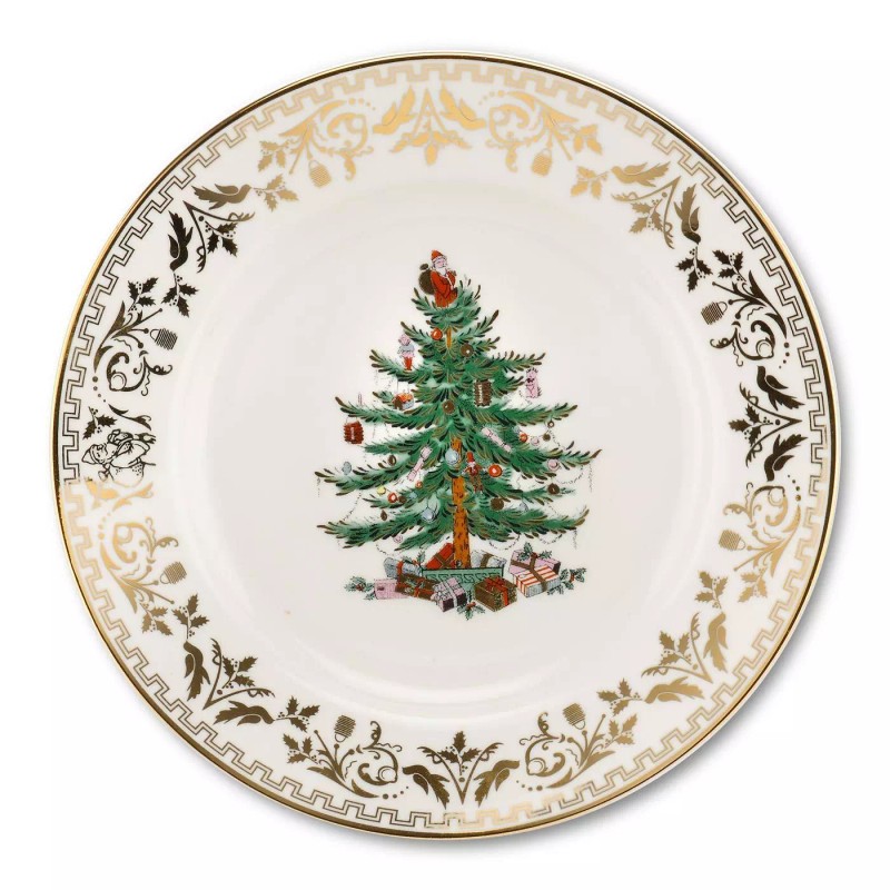 Spode Christmas Tree Gold Salad Plate, 8-Inch Porcelain Dinner & Appetizer Plate, Christmas Dinnerware, Microwave & Dishwasher Safe, Festive Collectible Seasonal Dining Plate - New