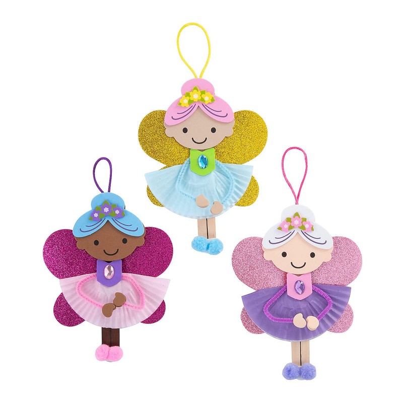 - This magical craft project is an enchanting May Day basket filler, tooth fairy gift or stocking stuffer. Assorted. Material: Includes self-adhesive foam and plastic pieces, chenille stems, paper baking cups, natural wood craft sticks and satin cording. Size: 5" x 6" Makes 12. All craft kit pieces are pre-packaged for individual use. Kits include instructions.