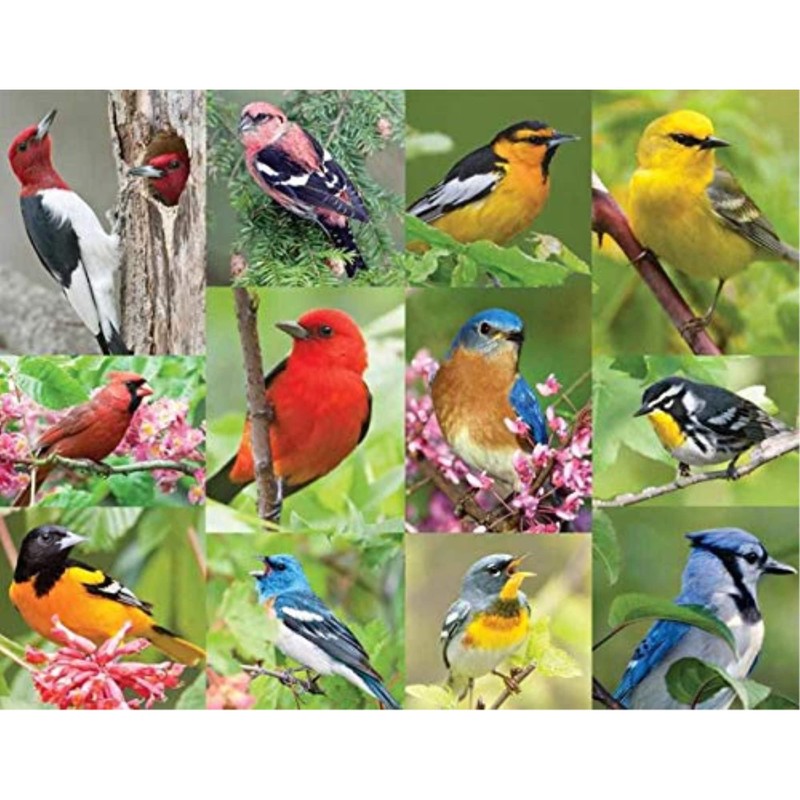 Springbok Birds of a Feather 500 piece Jigsaw Puzzle for Adults features a photo collage of colorful American birds