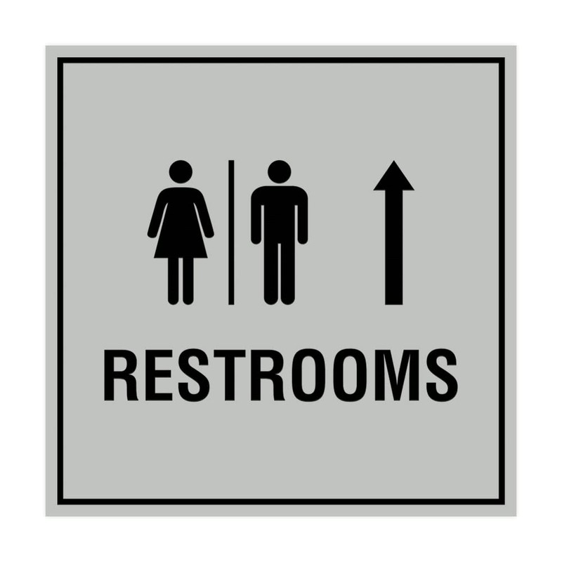 Square Restrooms Up Arrow Sign (Lt Gray) - Medium 1 Pack