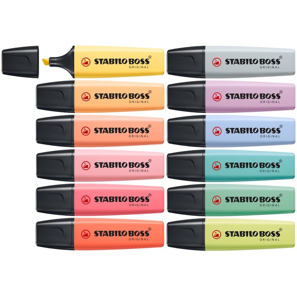 STABILO BOSS ORIGINAL Pastel Highlighters - Pack of 12 - Assorted Colours