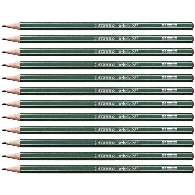 STABILO Othello 282/2B Pencil 2B Green with Stripes (Pack of 12)
