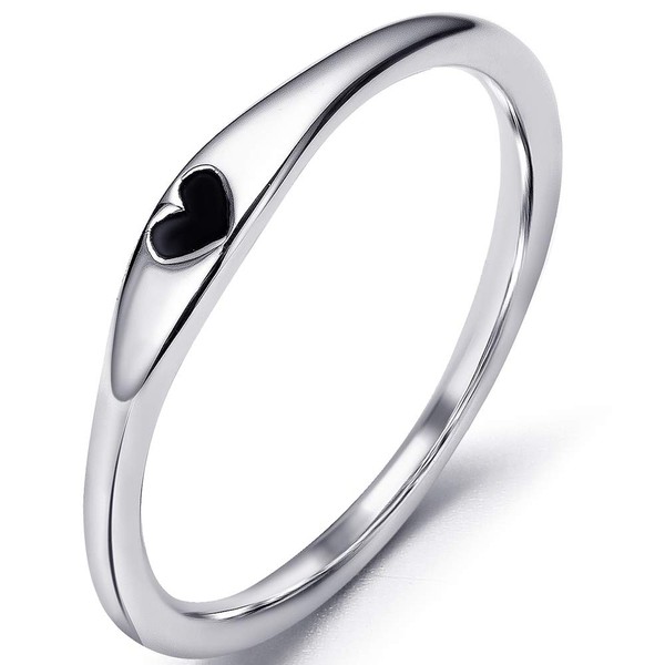 Stainless Steel Heart Shape Classical Wedding Band Stackable Ring (Silver & Black, 8)