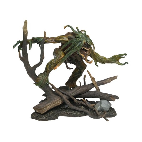 Stan Winston, creator of creatures like Predator and Pumpkinhead, has done it again with a series of frightful figures from the updated television special Creature Features. The Visitor is the manifestation made from a young boy's imagination after he watches a late-night monster movie. But as the Visitor begins a violent rampage, the psychic boy can no longer control his creation. The figure blends in well with the easily assembled diorama and sturdily adheres to it once placed there. The details on the base are incredible, with branches and rocks flawlessly painted to look realistic. The figure itself offers limited detailing, save the sharp teeth and eerie eyes in the well-done facial definition. Bendable appendages on the upper body make for a smooth transition from base to figure, but because of the weak joints, it's easy for an arm to become detached, causing frustration when posing the creature. Since the Visitor is intended for display using the base, it does not stand well on its own. A CD-Rom is also included, telling about the making of the Visitor and a look into what's coming next from Stan Winston Studios. WARNING: CHOKING HAZARD -- Small parts. Not for children under 3 yrs. Packaging may exhibit some minor shelfwear, such as bent corners, minor creases, dents, scratches, tears, etc...
