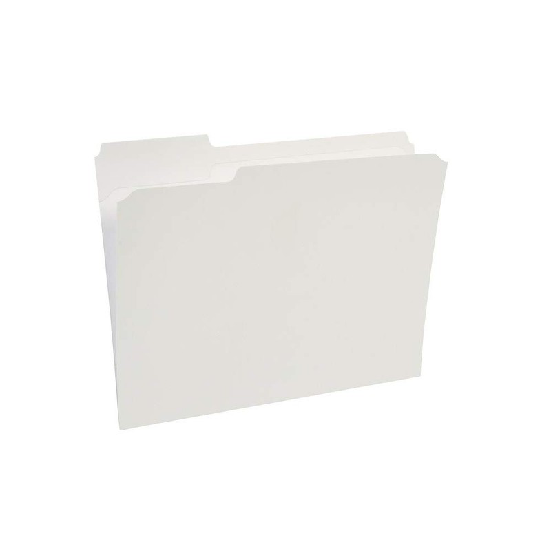 - White in color and made of paper stock for durability. Three 1/3-cut top tabs allow ample space for labelling to keep your files organized. Letter-size folders hold important files with ease. 100 folders store and organize countless vital documents. Contains 10% total recycled content.