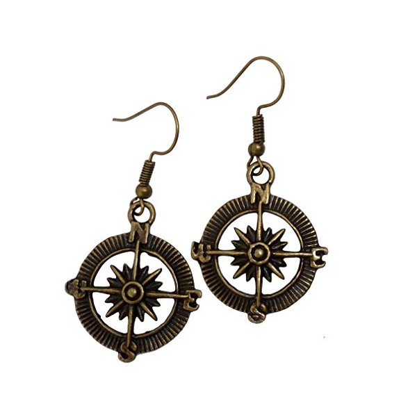 Steampunk Nautical Pirate compass earrings pendant charm dangle in Antique style
