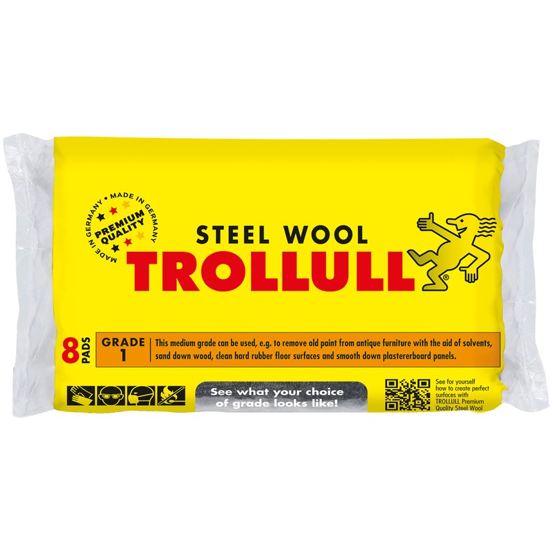 - The steel wool pads are easy to use and pre-portioned into 8 separate pads. Ideal for DIY enthusiasts and tradesmen working and cleaning on smaller surfaces. Trollull steel wool is highly pure, extremely tear-resistant and very flexible.