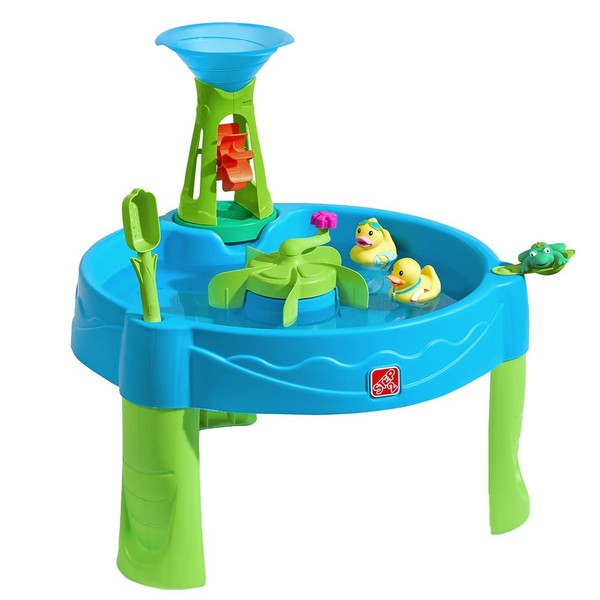 Hours of splashing fun await you with the duck dive water table by Step2. Little ones can get the water swirling around the table to create a wild whirlpool of fun and watch as their favorite water toys float around. Kids can add to the whirlpool fun by pouring water into the top of the water tower to create added splashing fun. This kid's water table features a no-leak drain plug to make clean-up time quick and easy. Multiple children can splash around in the water together as they use the fun water table accessories. Made in the USA of us and imported parts. Adult assembly required.