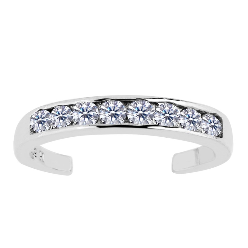 Sterling Silver Channel Set CZ Cuff Style Adjustable Toe Ring