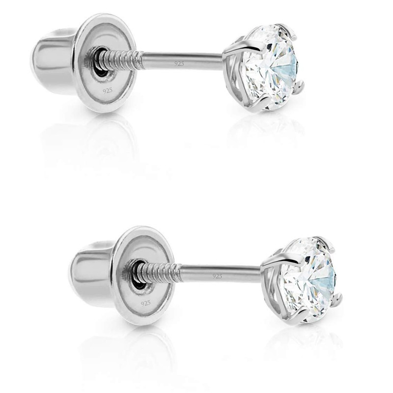 Sterling Silver Cubic Zirconia Solitaire CZ Stud Earrings with Screw Backs (3mm)